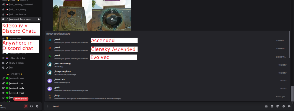 Pokud vám bot napíše že vás nemohl najít online ve hře, použíjte příkaz /send až budete online na serveru. Vybere vždy správného bota kterému příkaz pošlete.
